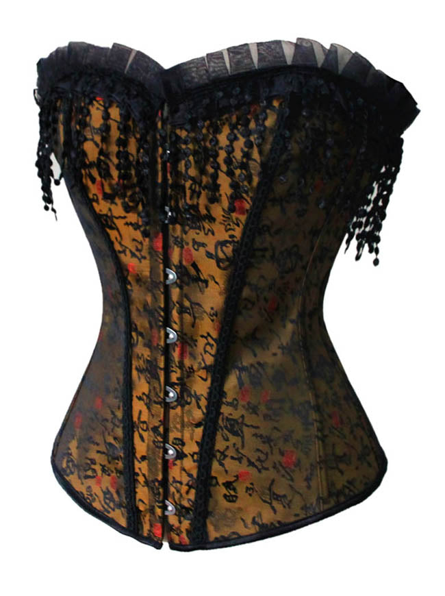 Mysterious Brocade Embroidery with Ruffles and Fringed Corset